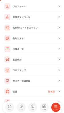 ↑公式アプリ。名刺交換やセミナー登録もできます。